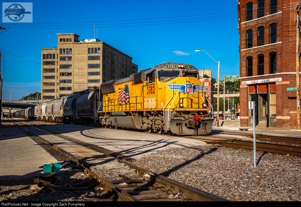 A single SD70M leads the charge on UP Train MKCCN 10, headed west out of town at Hickory Street on the UP KC Metro Sub. Normally this train would leave town via the Falls City Sub., but due to the continuing MOW Curfews on that line, the train uses the Kansas Sub. towards Marysville, KS, and turned back east at Gibbon Jct., NE.