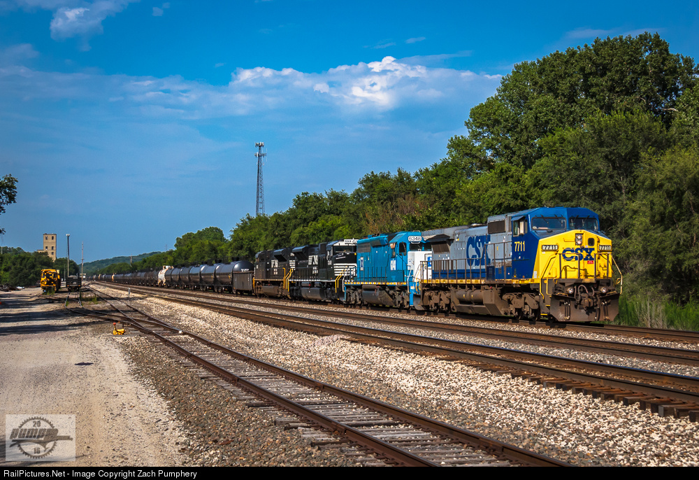 A very interesting consist brings BNSF Train U CXHHUT0 15T out of Argentine Yard on Main Track 2 of the BNSF Emporia Sub. at Morris. Trailing a very nice looking YN2 C40-8W on this empty unit LPG Train are an EMDX scheme SD40-2 from the Wheeling & Lake Erie of all places, an NS SD70ACU, recently rebuilt from an Ex-UP SD9043MAC, and an NS SD70M-2. Proof that surprises can still happen out here, even on The Transcon.