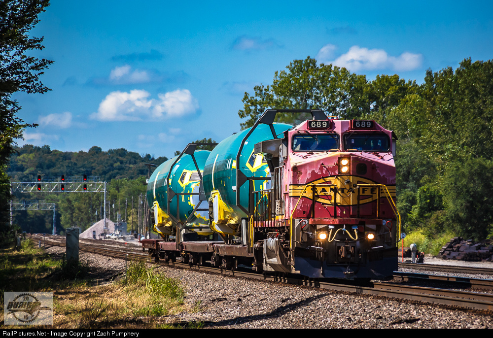After meeting a deadheading Officer Special headed towards Topeka, the Boeing Special, BNSF Train J WICKCK9 01A comes through Morris on the BNSF Emporia Sub. on Main Track 2 behind a single Ex-Santa Fe Warbonnet Dash-9. Even with new signals, faded paint and the super-long 737's, this scene certainly brings back memories of how this move looked in the 90's. The fuselages on the train are were labeled as line numbers 6123 and 6122.