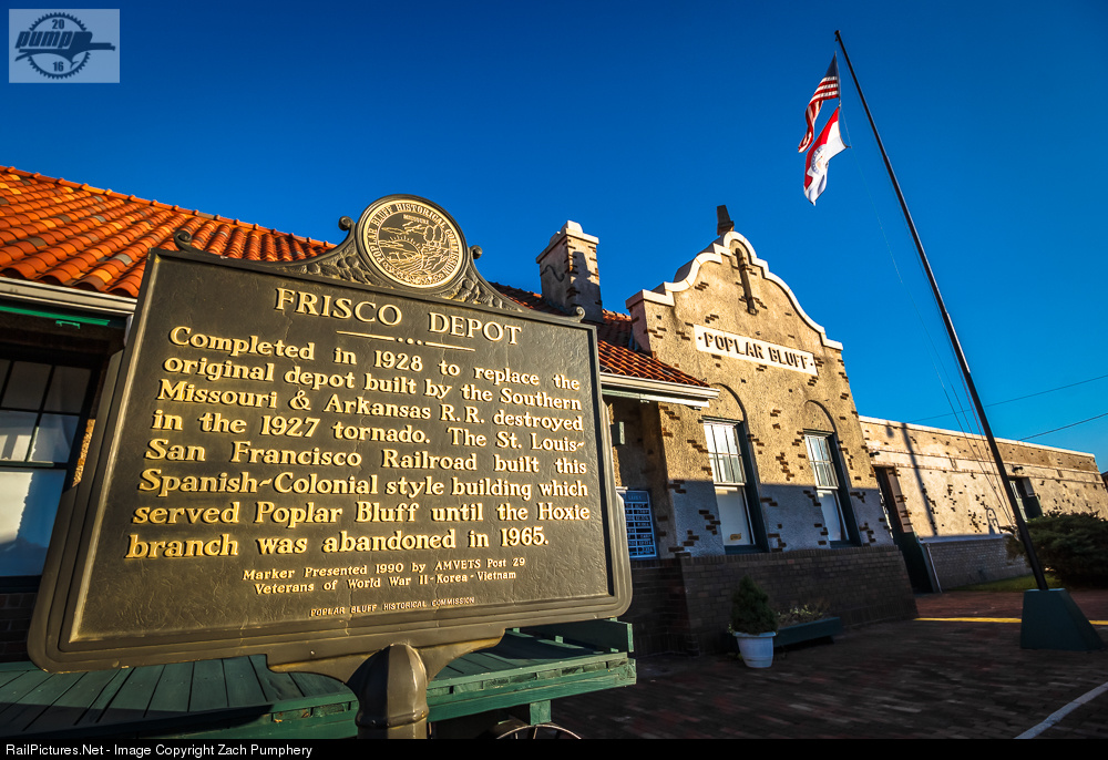 As the sign says, the Frisco Depot, home to the Mo-Ark Regional Railroad Museum, is a replacement structure for a previous one destroyed in the devastating 1927 tornado.
