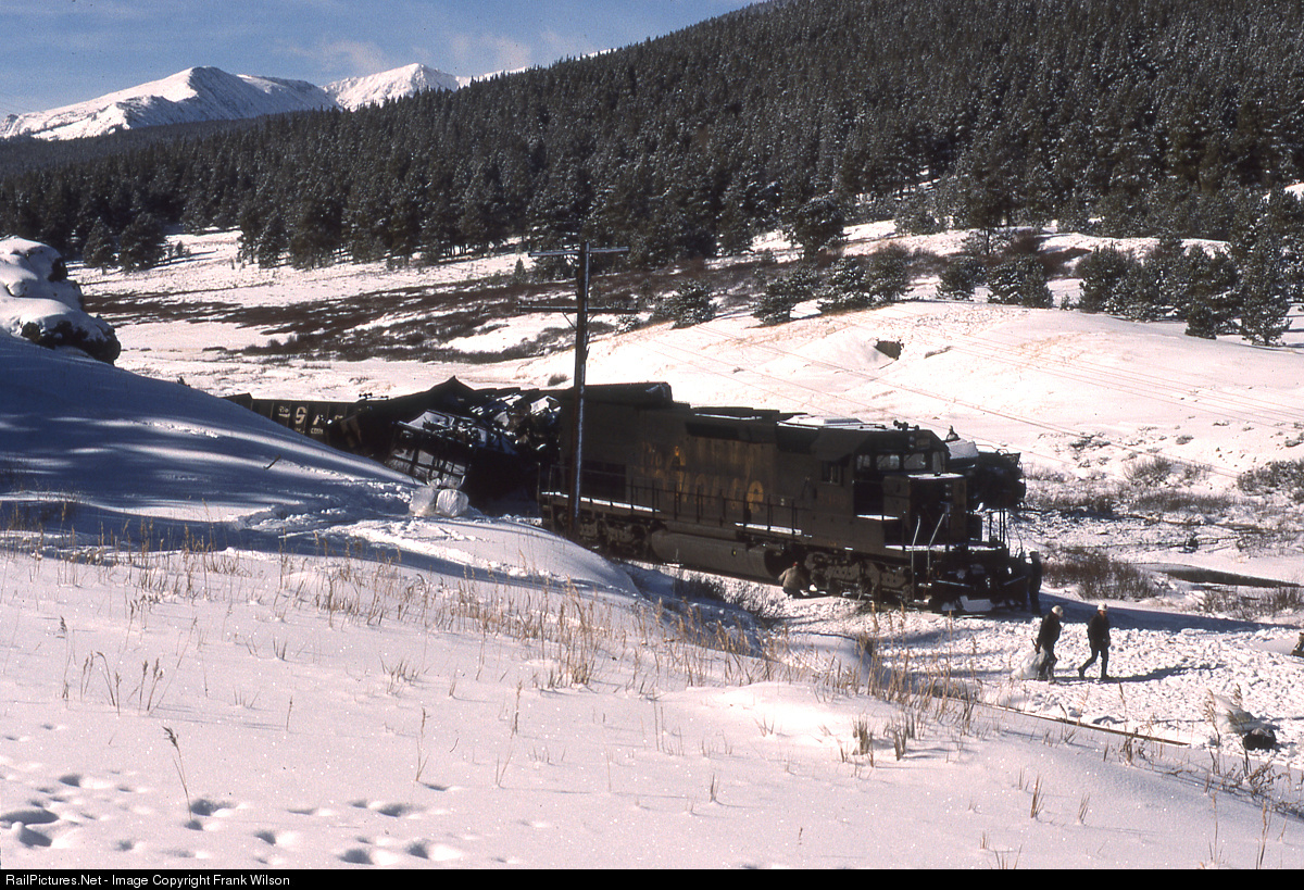 This is the aftermath of the November 22, 1994 taconite train runaway on Tennessee Pass. The train ran away on the 3% grade, and ended up in a pile at the bottom of the Mitchell Curves. Remarkably the lead locomotive stayed on the rails, no one was killed.