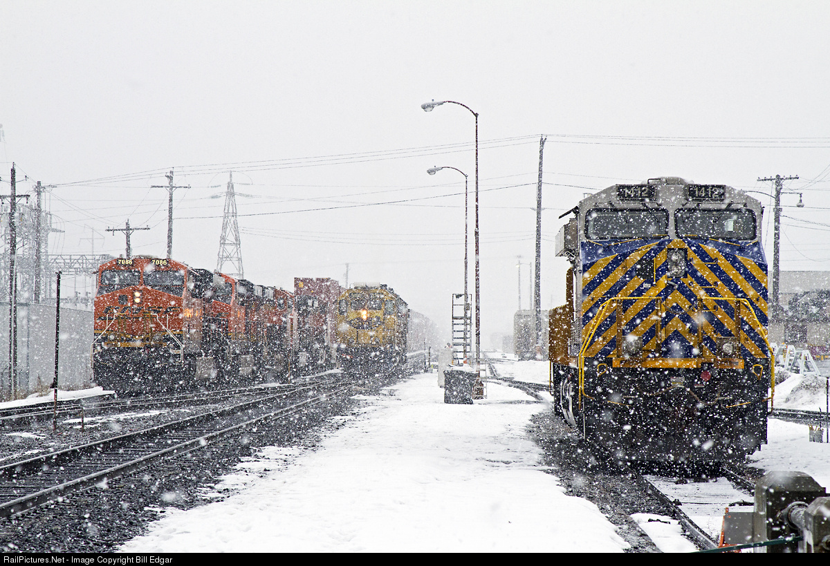 Wenatchee has had a long winter this year with snow on the ground since December 5, 2016. Here on February 20 we woke up to heavy snowflakes, which made it fun to capture a bit of action near the yard office as BNSF 7086 gets ready to tackle Stevens Pass with a stack train, and a pair of Santa Fe blue and yellow Geeps (a GP50 and GP40X) go to work on the Spud Local to Quincy. The Citicorp GE will idle for a day before pairing up with a twin and making a light engine move west. As nasty as the snow looked, no shoveling was required!