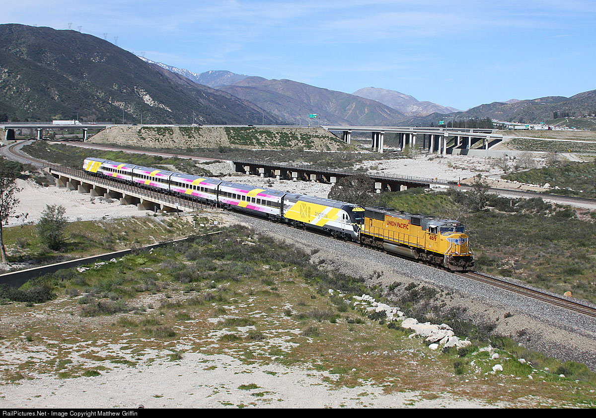 UP 4619 leads the SFLNO down the Palmdale Cutoff at Devore with a brightline special move.