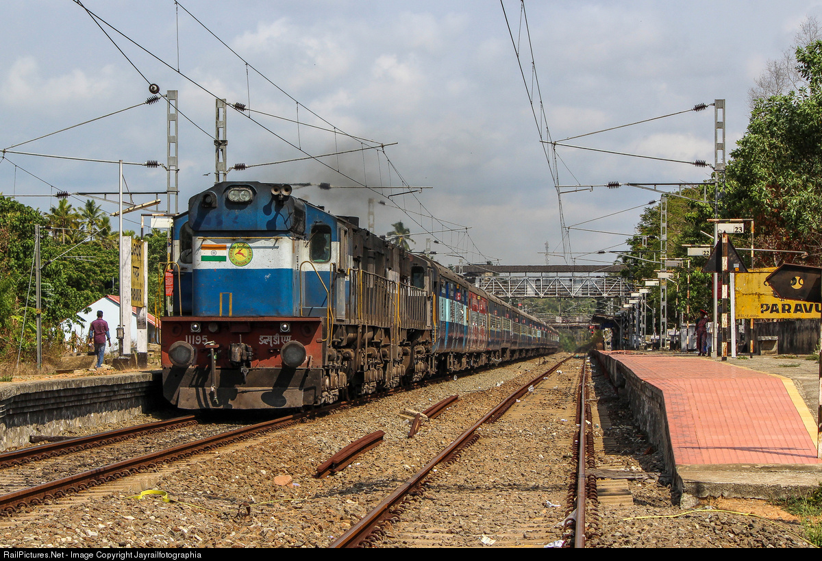 Dual ALCO, ERODE WDM-3D, powering Thiruvananthapuram Central - H.Nizamuddin Weekly Express, skipping Paravur station