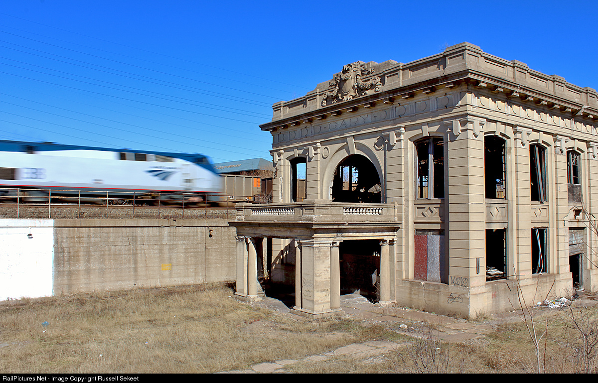 | Built in 1910, Gary Union Station served the New York Central and the Baltimore & Ohio until the 1950's. It was closed as railroad travel fell out of fashion. The station deteriorated further as the city's steel industry fell apart, and residents of Gary moved away. Today, Amtrak's Wolverine flies past without a pausing to pick up passengers at a once great station. |