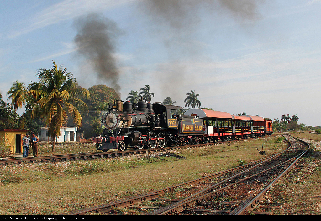 | Tourist train with special cars in the 'Museo de Agroindustria Azucarera', former sugar refinery, arrvies for boarding |