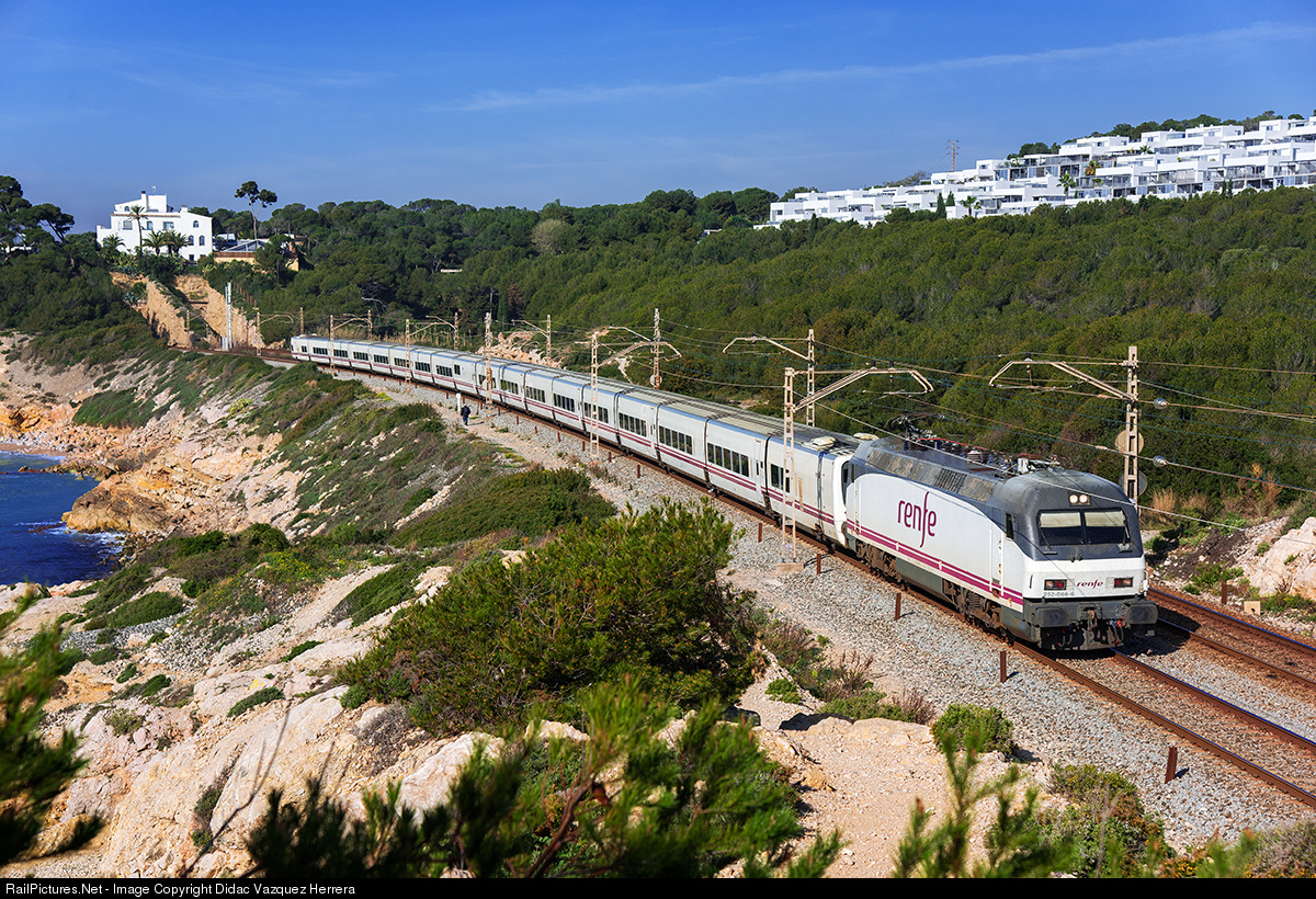 | Euromed 11702 Valencia Joaquin Sorolla-Barcelona Sants passing near Vilanova i la Geltrú with Talgo VII and 252.066. |