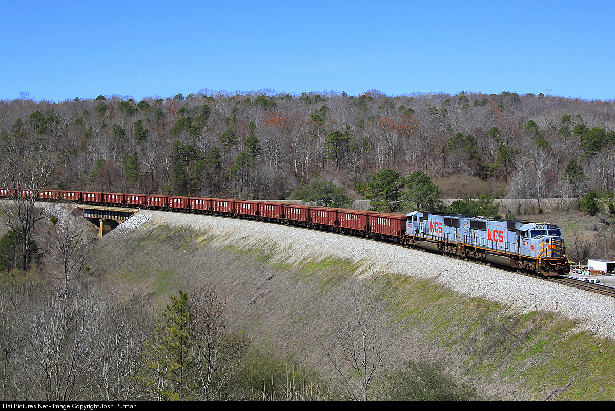 In a rare occasion, a pair of grey SD70MAC's lead an empty Herzog rock train through Lovick, Al. Getting grey KCS motors with no Belle Scheme in the consisit these days is very rare.