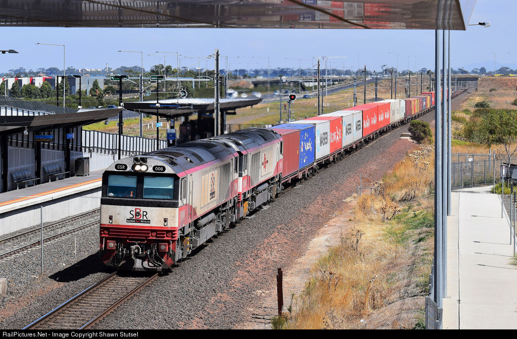 | SCT's CSR008 and CSR003 thunder through Williams Landing, Melbourne Victoria with 7922, Container Service, bound for the docks... |