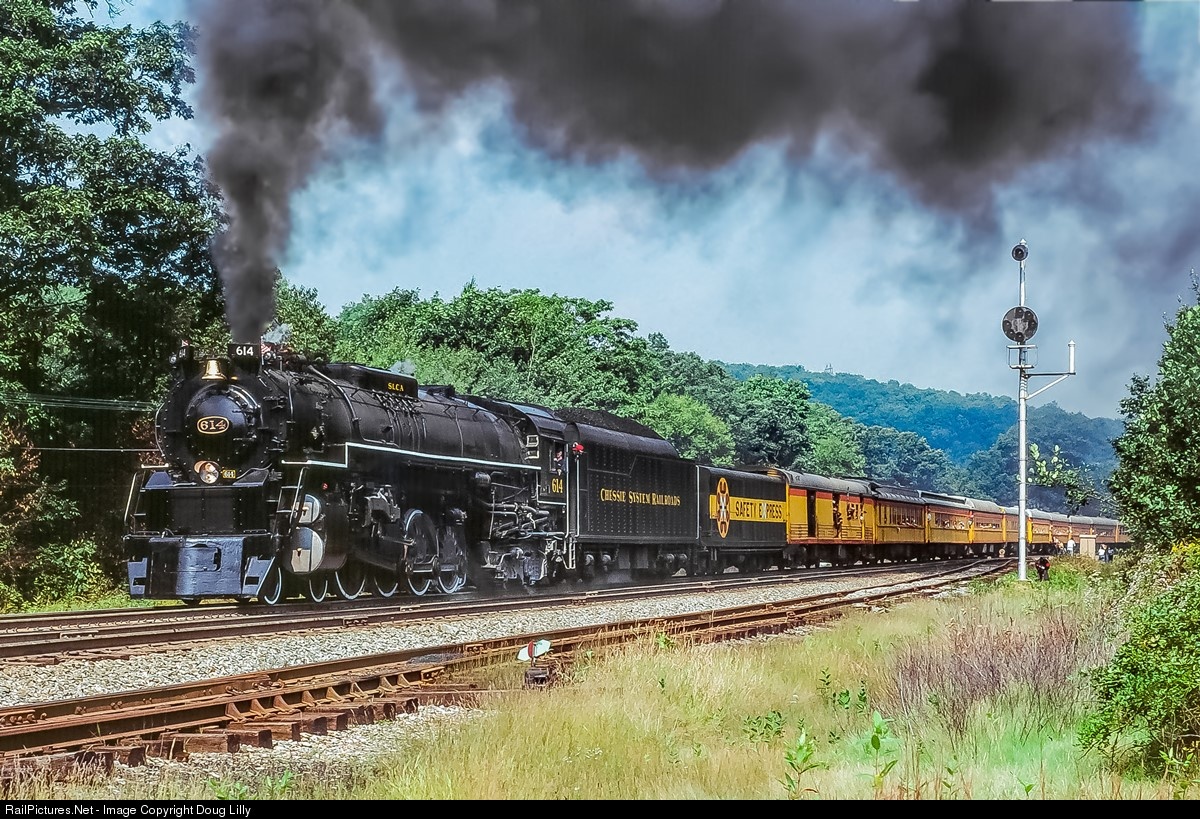 Chesapeake & Ohio 4-8-4 614 continues its assault of B&O’s Seventeen Mile Grade at Swanton, Maryland. This Chessie Safety Express excursion ran from Cumberland, Maryland to Terra Alta, West Virginia.