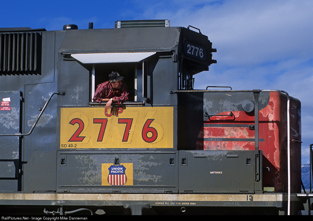 Engineer Mel Baughman watches ahead at his brakeman on the ground directing his next move at East Carbon, Utah, on February 1, 2006. He is switching cars at the large landfill facility ECDC from the cab of a well-used former Southern Pacific SD45, rebuilt into SD40M-2 No. 2776.