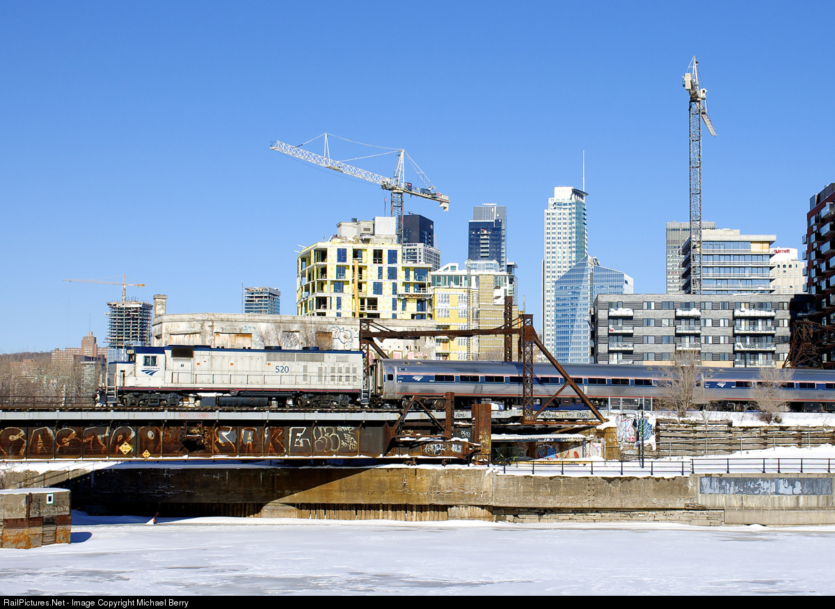 | Well that was unexpected. With word from upstate New York railfans that AMTK 69 (the northbound Adirondack) left Albany with a GP38H-3 as sole power yesterday, I was one of many railfans to shoot it on AMTK 68 today. Here the ex-GP40TC (built by GMD in London, Ontario for GO Transit just before its startup) is pushing the deadheading train towards Central Station 80 minutes before departure. This may be the first time one of these units has been the sole power on a medium-distance train such as the Adirondack. It certainly made a nice change from the usual Genesis Series power. |