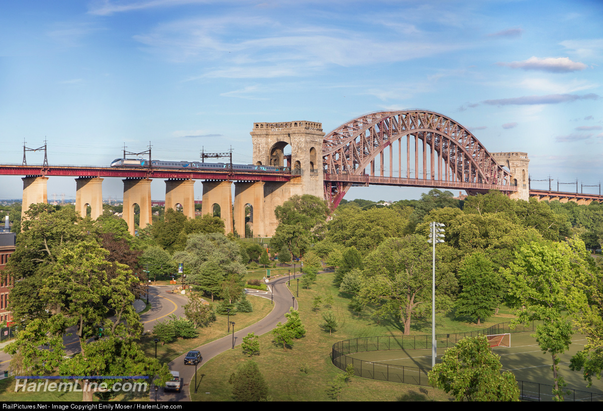 An Acela hustles across the now 100 year old Hell Gate Bridge on a lovely summer evening.