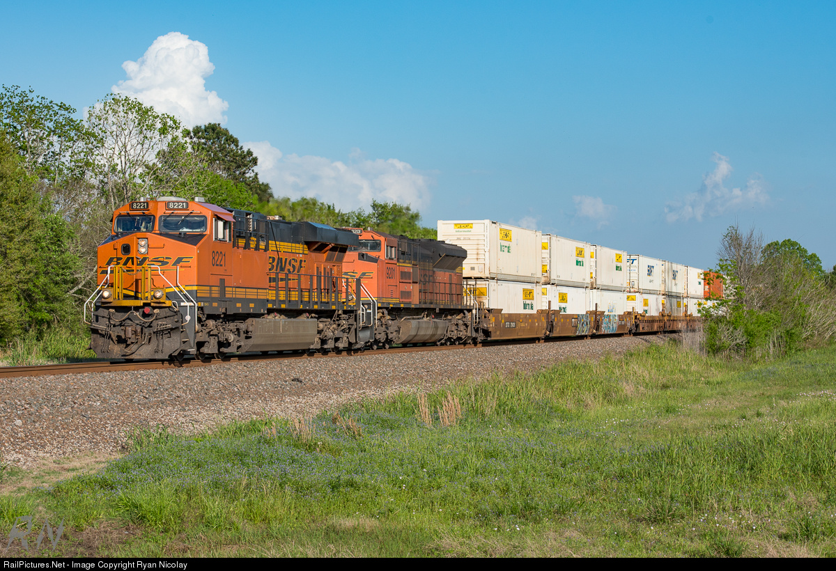 RailPictures.Net Photo: BNSF 8221 Burlington Northern Santa Fe GE ES44C4 at Alvin, Texas by Ryan Nicolay