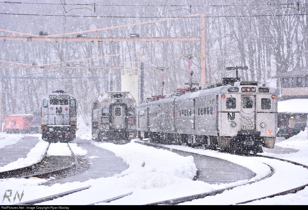 NJ Transit equipment rests as the last snow storm of the season passes through.