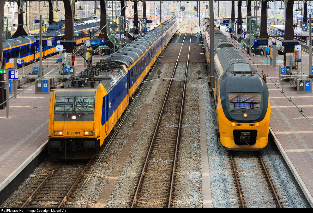 Engine 186 013 in front of train 919 from Breda to Amsterdam at station Rotterdam Centraal.