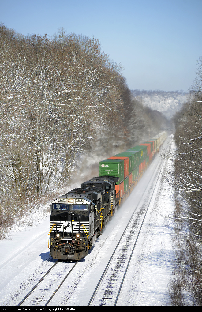 Thursday and Friday, March 5 and 6, 2015, was a perfect combination for snow shots. After heavy snow all day Thursday, March 5, Friday dawned clear and sunny with a covering of white. Eastbound NS 26T blasts through the cut between Ardara and Larimer, PA.