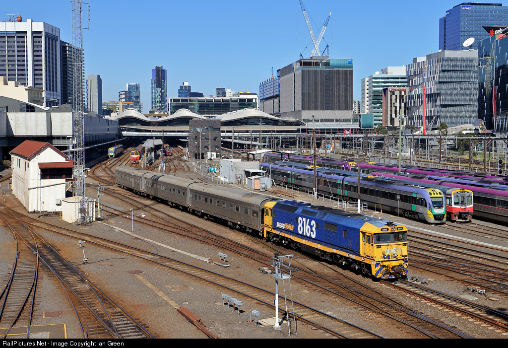 8163 makes an unusual appearance at Southern Cross Station with the AK test train to Northeast Victoria.