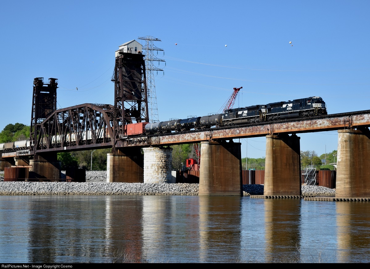NS 169 comes across Tenn Bridge with an Fresh SD70ACu on point.