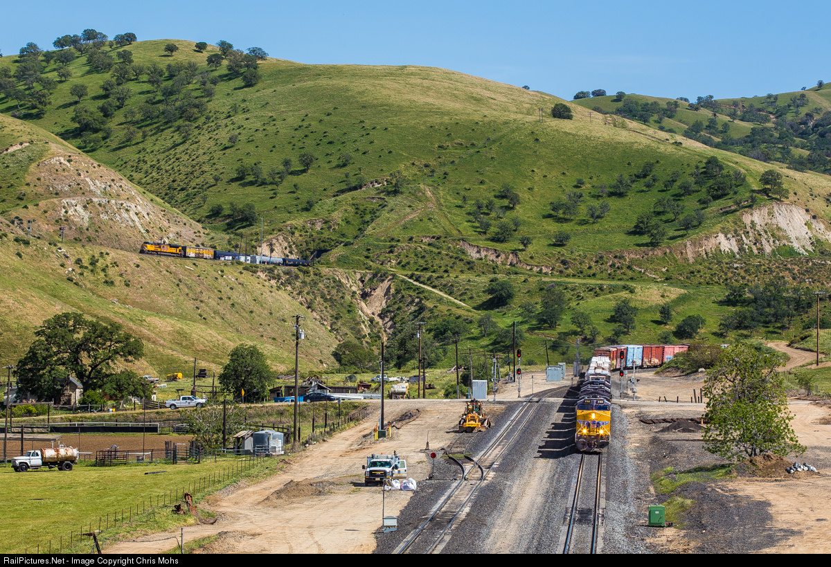Nouthbound Union Pacific ES44AC No.8166 leads a Mixed Manifest into Bealville Siding. Meanwhile further up the hill the Distributed power unit is about to enter Tunnel 5.