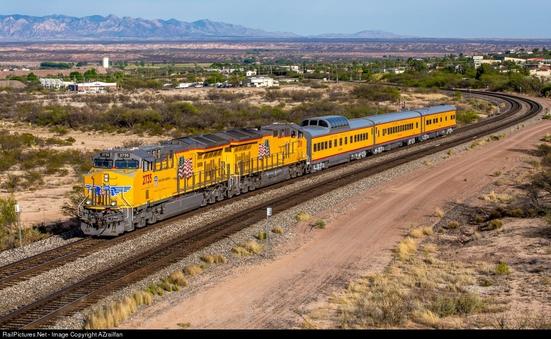 | UP 2735 leads the UP Cares train out of Benson, AZ to Tucson, AZ |
