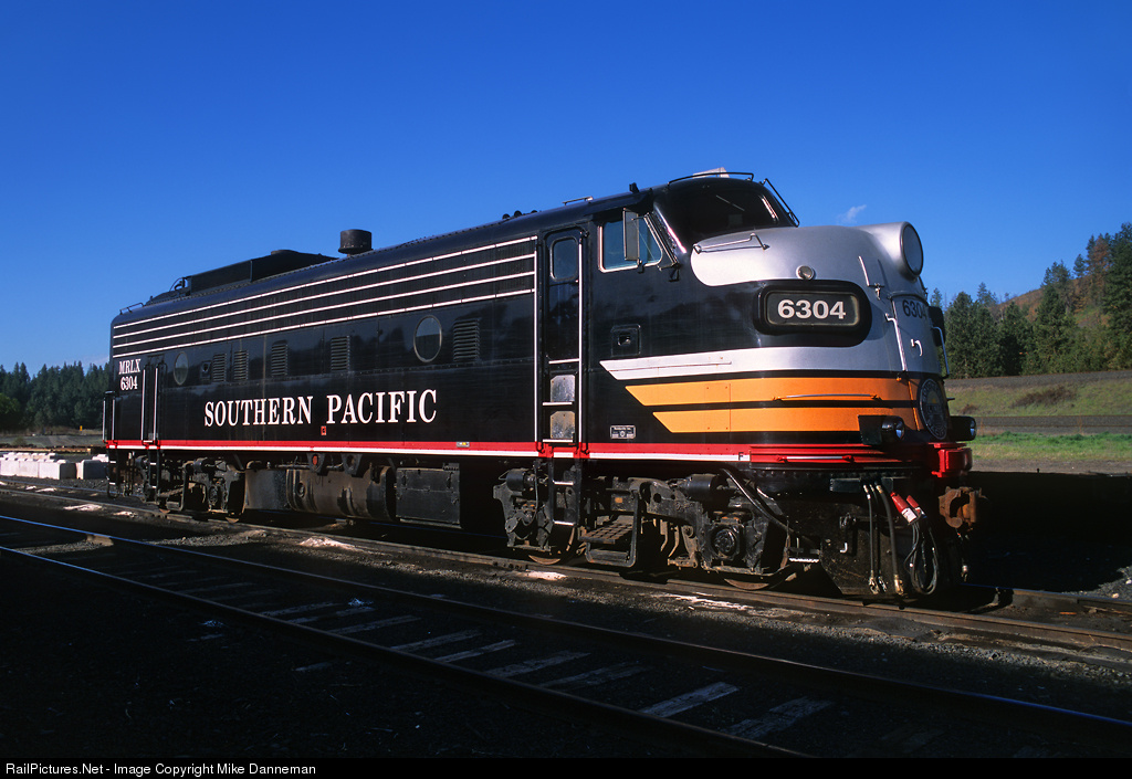 Mid America Rail Car Leasing (MRLX) EMD FP9 painted in classy Southern Pacific black widow colors rests in the small yard at Marshall, Washington, on May 15, 2010, while working for Washington & Idaho Railroad.