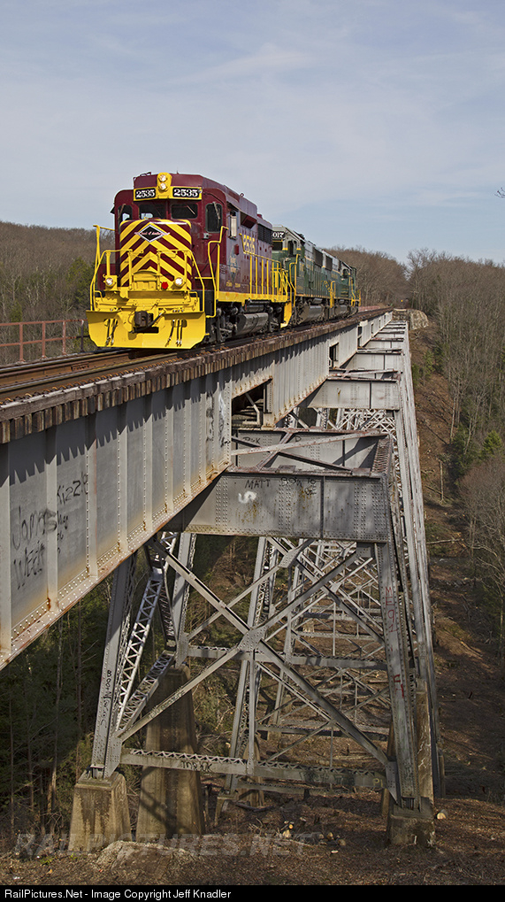 The newest addition to the Reading and Northern fleet leads the PNFF-10 across the Hometown High Bridge on the return trip to Port Clinton. This was the first run for the 2535 in revenue service. Current plans for this locomotive (and sister 2534 once in service) will be to use them for R&N passenger operations around the system.