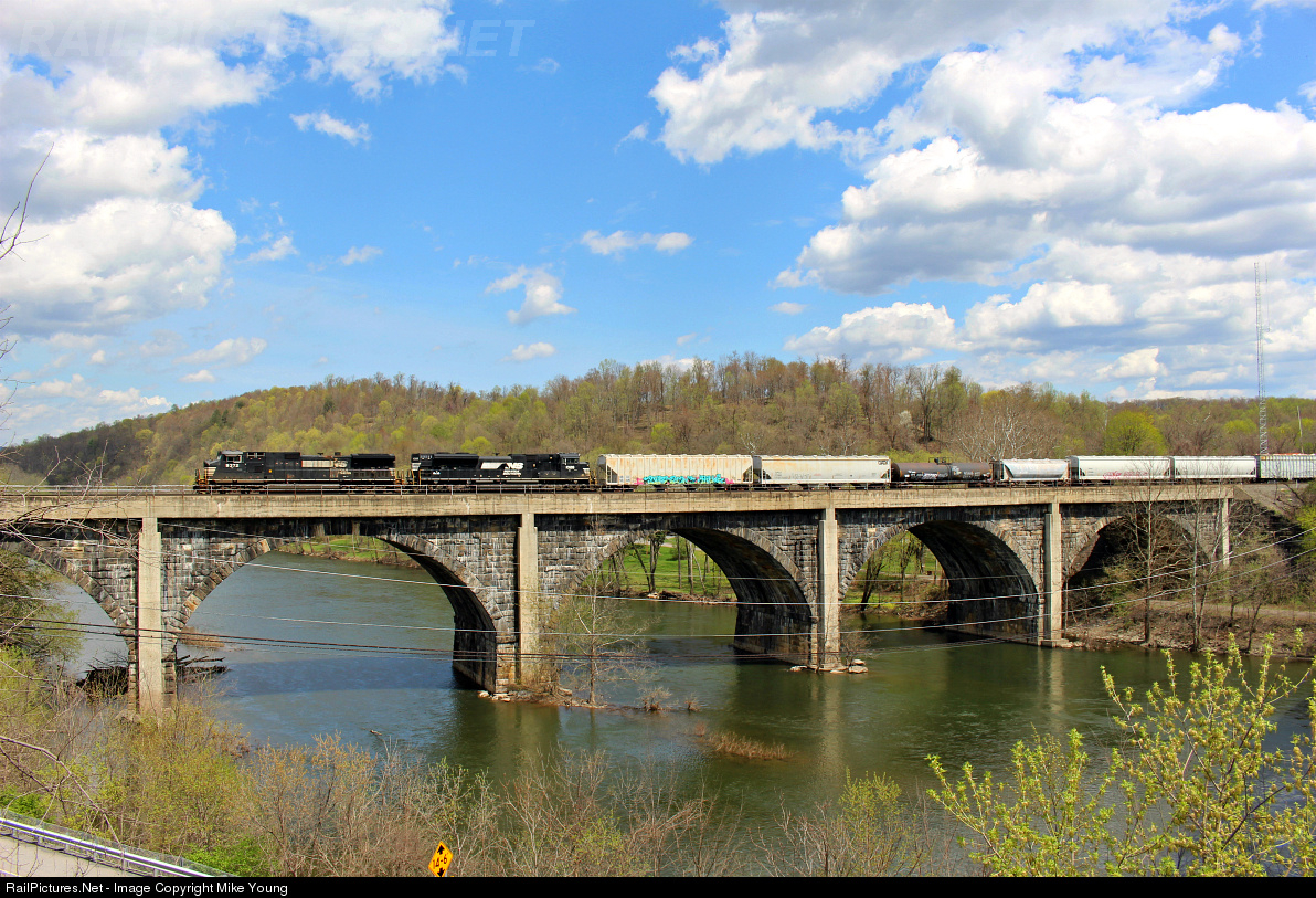 Gotta thank the sun gods for this one, NS 19G hustles westbound through Mt Union crossing the river on a beautiful Easter Sunday.