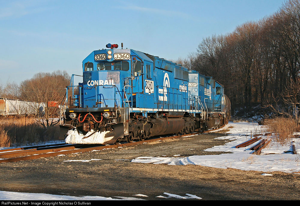 NS 3360 and NS 5304 (GP38-2) make up today's NS H65 from Allentown Yard. This was one of the last times I got to see a matched pair of engines in Conrail colors. The front unit formerly was CR 6414 and the rear unit formerly was CR 8119 and later became DRRV 5304.