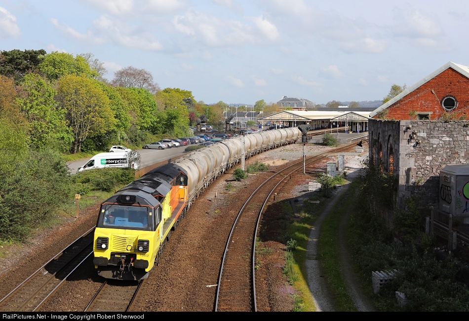 | 70802 hauls a late running 6C35 03:13 Aberthaw Cement Works to Moorswater through Newton Abbot on Wednesday 19th April 2017 |