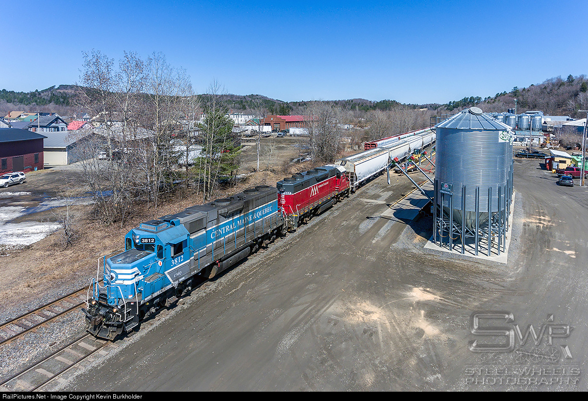 Tonnage for Vermont Rail System's Washington County Railroad was heavy out of Newport, Vermont, and through cooperative operations with the Central Maine & Quebec, was moved with a little help from pooled motive power. CMQ GP38-3 3812 led VTR GP38-3 207 on the southbound Newport-White River Junction train NPWJ-14 on April 14 and is seen switching the CTI mill at Lyndonville, VT.