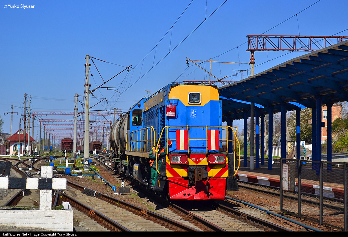 Diesel shunter TEM15-058 maunevring at the Vinnytsya station with two tanks. This diesel shunter built in 1989 by Bryansk Engineering Plant. Such this diesel shunter was in property Private Joint Stock Company "Vinnytsya fat-oil integrated works". Diesel shunter TEM15 built from 1987 to 1995, originally designed for railways in Cuba (TEM15K), diesel locomotive of this series had engine 6D49 and common in such countries as Russian Federation, Ukraine and Uzbekistan.