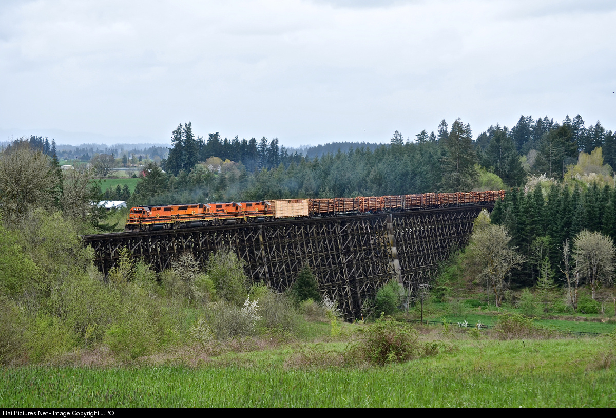 Logs on Logs as the Harbor Turn rolls over the Holcomb Creek road. This train usually passes over this bridge and back in the night making a pretty rare day run due to track work.