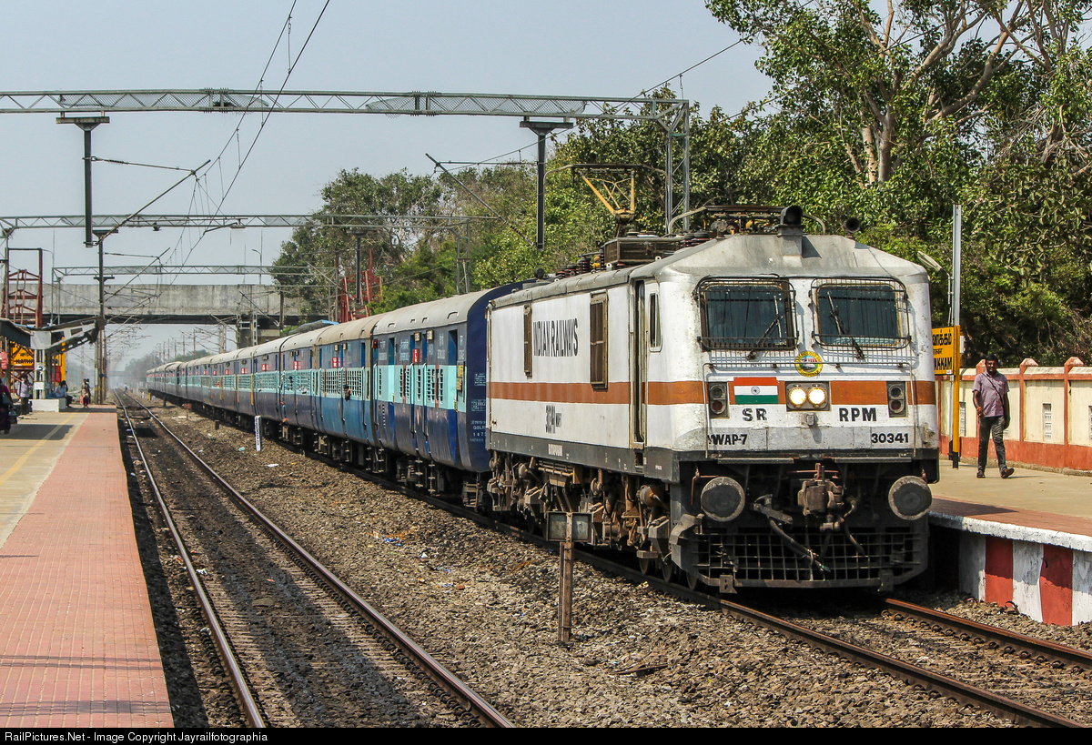 ROYAPURAM WAP-7, has begun its 1890 km journey from Chennai Central to Ahmedabad Jn with NAVJEEVAN Express, passing through Kathivakkam