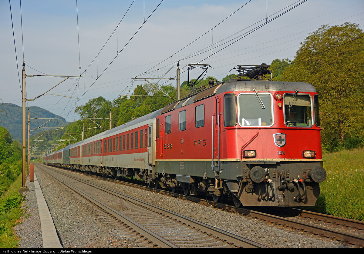 | Re 420 11210 SBB CFF FFS is hauling the CityNightLine (CNL) Berlin - Zürich HB (end of operation late 2016) along the Bözbergline from Villnachern in the direction of Brugg. |