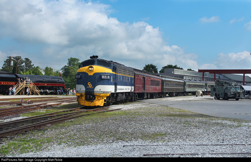 A former Clinchfield F3A disguised in classy C&O passenger dress leads an NCTM passenger run during their CSX and Atlanta History Museum sponsored "The Texas Returns" event.