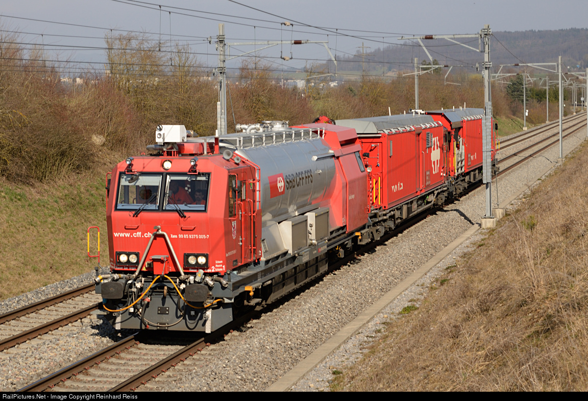 | Fire fighting and rescue train "LRZ 08" of Winterthur with unit Xans 9375 005 on a practise run at Jestetten. |