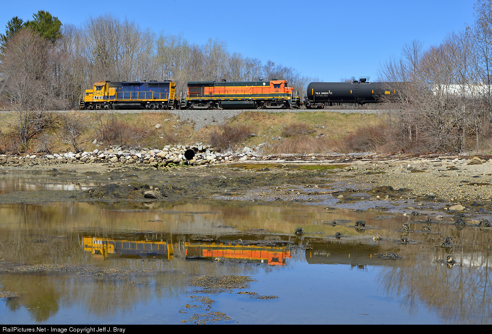 During the first true sunny morning in nearly a week, Central Maine & Quebec ended up operating a Sunday #210 to Searsport, Maine. The wind had died down just enough as the train approached the vicinity of MP 4 and Middle Street in Stockton Springs. Within a couple miles of their first customer, the train looked way more like a Santa Fe branch line operation than CMQ's Stockton Harbor in coastal Maine territory.