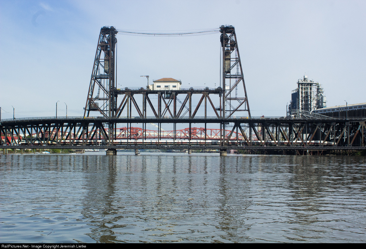 Amtrak Cascade's Mt. Bachelor talgo set stretches across the Steel Bridge as it prepares to head south for a journey down UP's Brooklyn Subdivision.