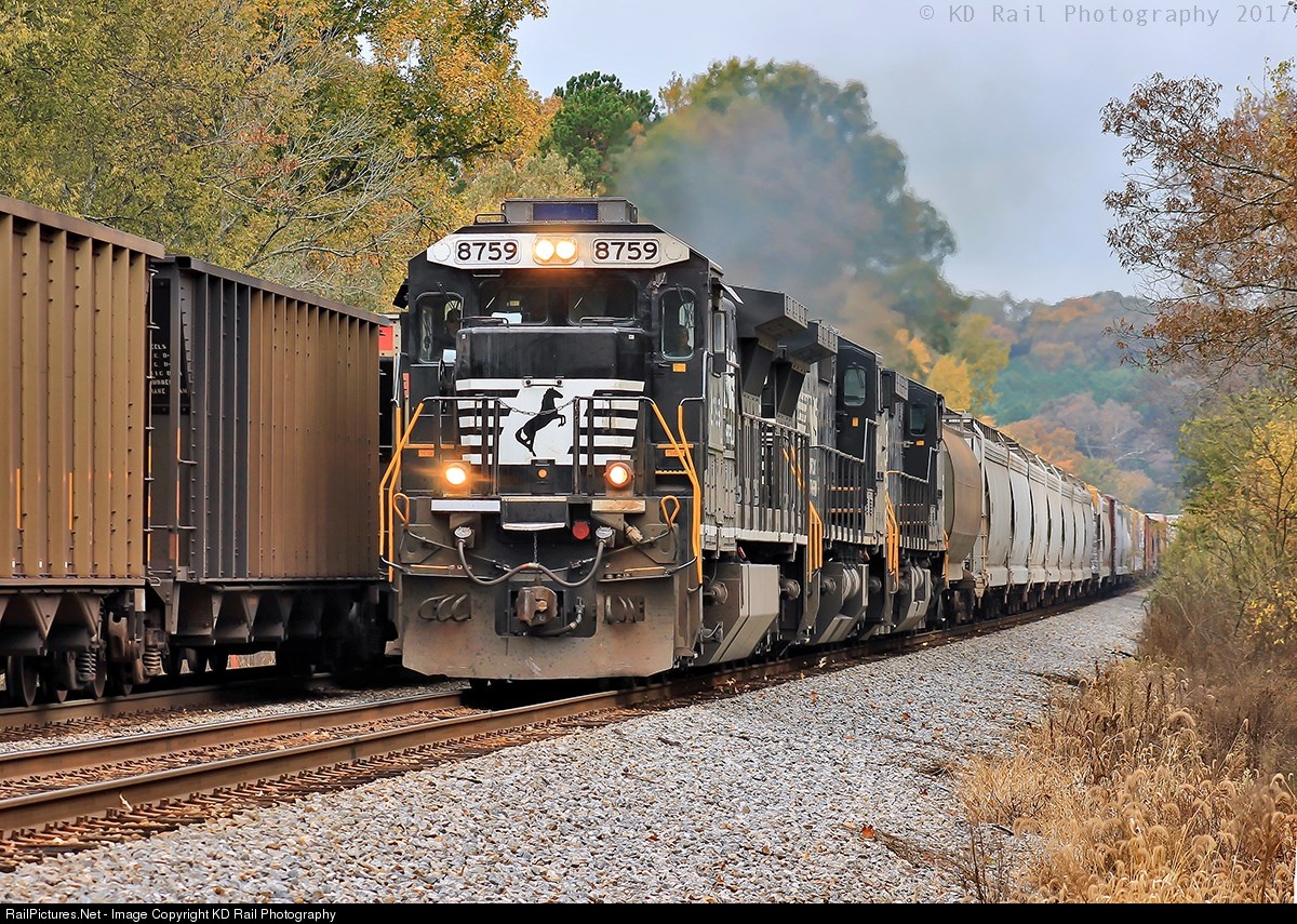 Passing inbound NS 733 which is running north on the main 1 track, NS 175 (Bellevue,OH-Macon,GA) is accelerating up grade on the main two track with a ratty GE D8-40C at the head sporting the Norfolk Southern's unibrow paint scheme, and equipt with a roof top a/c unit which give these unit the strange nickname "tophats." CT-Dispatcher has the Macon bound manifest lined all the way to control point Ooltewah, where the train will diverge from the main 2 track to the main 1 track on the the NS Atlanta North End (H-Line) where the North-End dispatcher will take charge of train traffic operation from Ooltewah south.