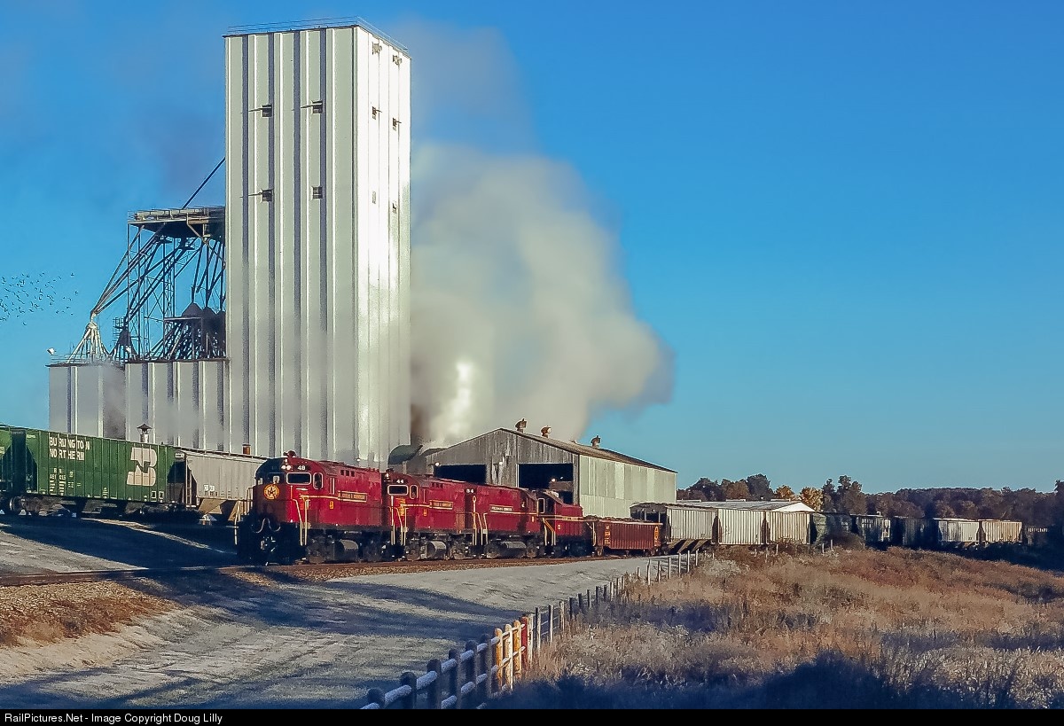 Arkansas & Missouri’s Fort Smith Turn passes the Tyson Foods feed plant in Springdale, Arkansas shortly after getting underway.