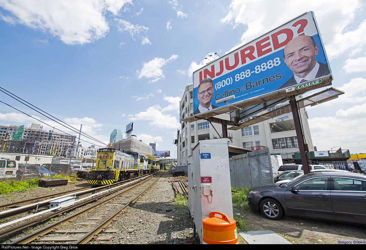 "LIRR MP15s Galore at Borden Ave" Five Long Island Rail Road MP15ACs sit just east of the Borden Ave Crossing at Long Island City awaiting the arrival of the last Ringling Brothers Circus train. Also interesting enough, at the time this photo was taken, Cellino And Barnes, the Iconic New York Injury Attorneys pictured on the billboard filed for the dissolvement of their law firm.
