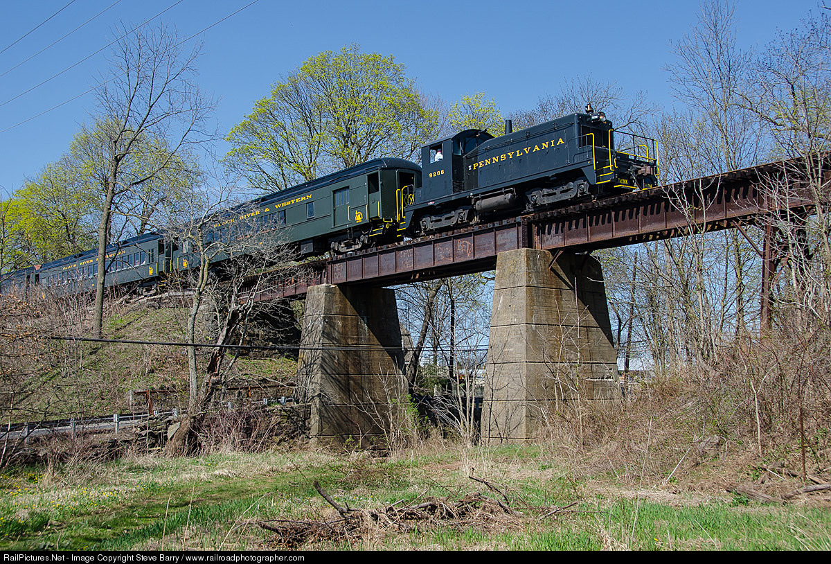 | On a pleasant spring day, Pennsylvania Railroad 9206 leads a train from Flemington to Ringoes, N.J., over the Copper Hill Trestle. |