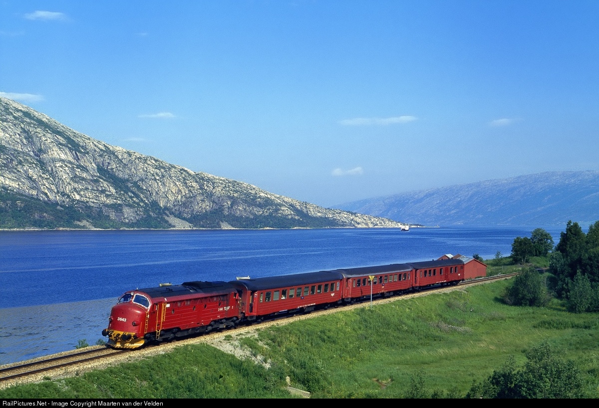 | Train 478 from Mo i Rana to Trondheim S passes the Vefsnfjorden, just before the arrival at Mosjøen |