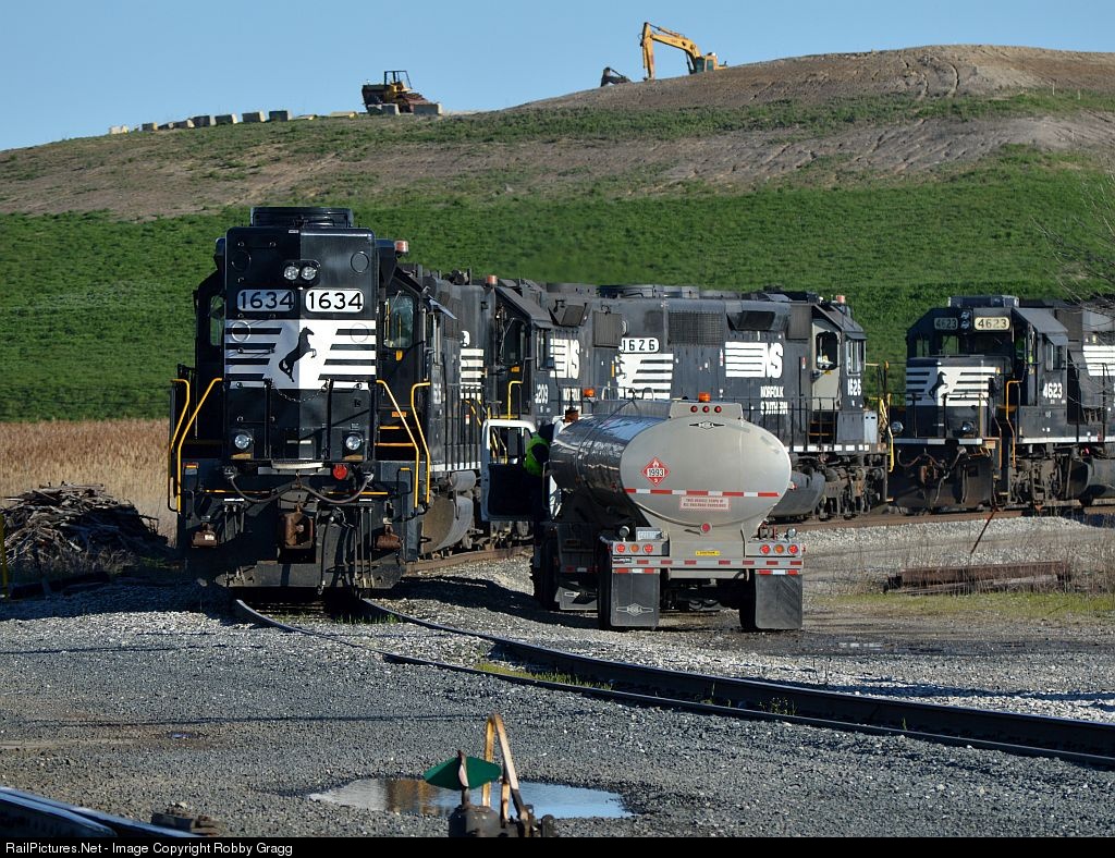 NS high hood SD40-2 1634 gets refueled at Homestead yard in Oregon, OH.