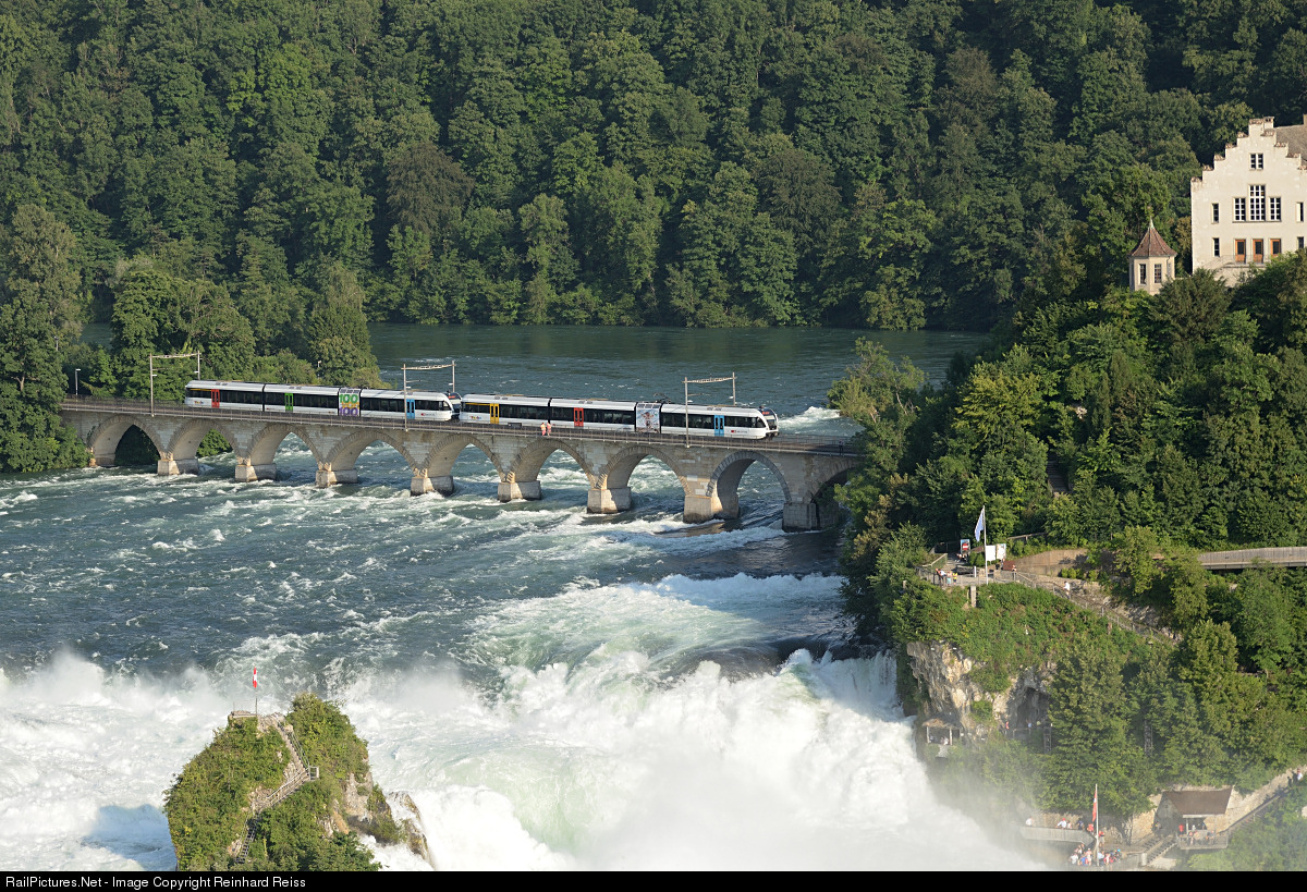 Thurbo GTW 526 791 & 526 800 pass the Rhine fall bridge on the way from Schaffhausen to Winterthur