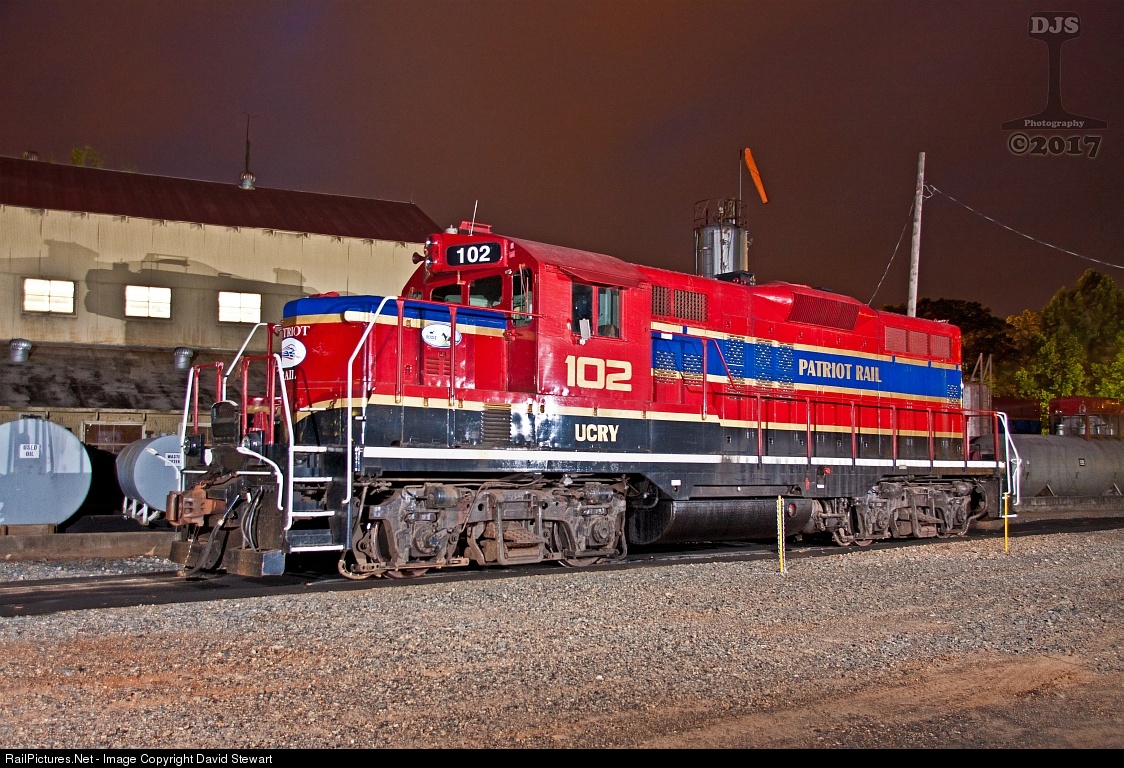 | UCRY GP9 102 stands at Gibsland, Louisiana on Patriot Rail's Louisiana & North West. The unit was built in 1956 for the C&O. |