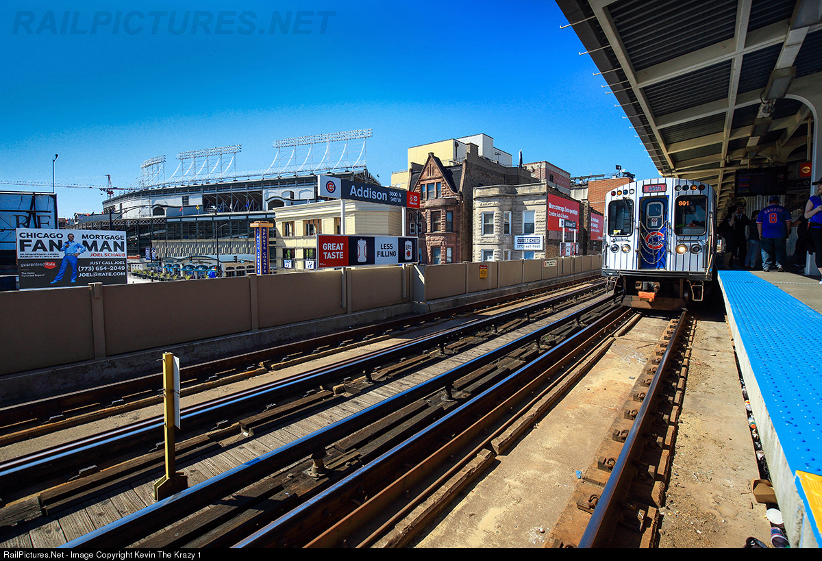 The Chicago Transit Authority wrapped four cars for the 2016 World Series champions seen here at the Red Line Addison stop for Wrigley Field.