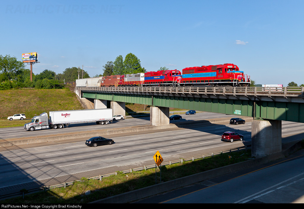 Passing over the competition, a large Georgia Northeastern freight with a colorful consist, still leaves no doubt as to the new owners.