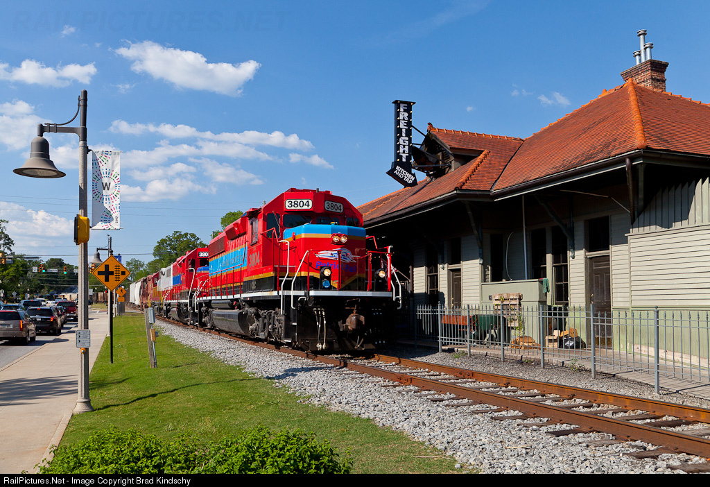 | Like the former SP motor leading this Georgia Northeastern freight, the L&N Depot has a new lease on life as "Freight Kitchen and Tap". |